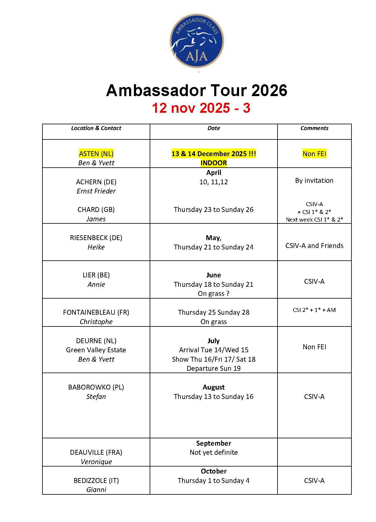 Le calendrier et le règlement 2026 sont en ligne En août, il n'y a qu'une seule compétition